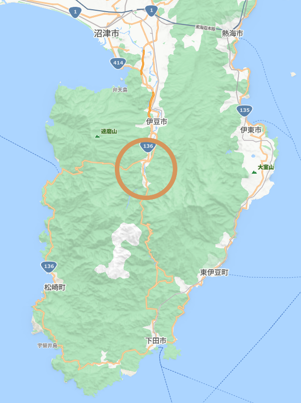 修善寺道路終点にある道の駅伊豆月ケ瀬 より車で10分くらいのところです。