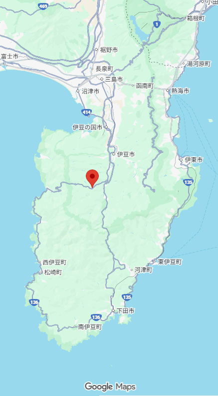 修善寺道路終点にある道の駅伊豆月ケ瀬 より車で10分くらい。天城ふるさと広場キャンプ場の隣です。